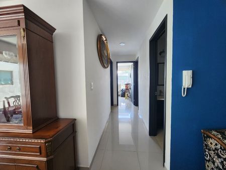 Amplio departamento, consta de sala comedor, cocina equipada, área de lavado, despensa, tres recámaras con clóset, baño en recámara principal y baño completo para servicio de las dos recámaras secundarias. Espacio para dos autos (independientes), el edificio cuenta con elevador, vigilancia 24/7, jardín comunal con baños y área de cocina para eventos.